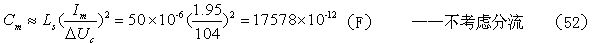 當(dāng)考慮電阻R對電容器C充電的分流作用,以及開關(guān)管由導(dǎo)通到完全關(guān)斷期間,漏極電流對電容器C充電的分流作用時(shí),根據(jù)(36)式,假設(shè)分流系數(shù)r = 0.5 ,則(52)式還可改寫為: