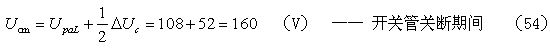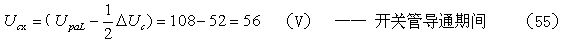 這里順便說明一下,為什么(53)式中的分流系數(shù)取值為0.5,而不是其它數(shù)值。因?yàn)椋至飨禂?shù)r的取值范圍是0~1,它是一個(gè)動態(tài)系數(shù),它的大小,除了與輸入電壓和輸出功率和RCD電路中電容、電阻的大小有關(guān)外,還與開關(guān)管的關(guān)斷時(shí)間,以及電流大小有關(guān)系。