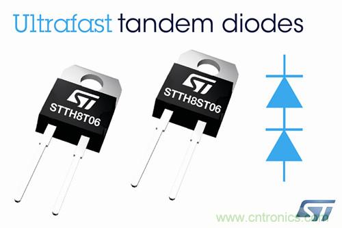 第二代600V、8A/12A超高速串聯(lián)二極管性能在開關(guān)頻率高達(dá)100KHz和結(jié)溫低于100攝氏度時(shí),可與碳化硅二極管相媲美,但價(jià)格比碳化硅二極管低至少30%。SiC二極管的性能不受結(jié)溫的影響,在結(jié)溫高于100攝氏度時(shí),SiC二極管性能高于超高速串聯(lián)二極管。目前ST已開發(fā)出650V、20A的SiC二極管,使得其SiC二極管產(chǎn)品系列支持正向電流為4A、6A、8A、12A和20A的不同應(yīng)用。