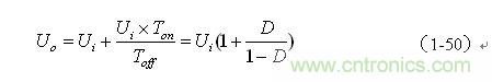 這里特別指出:(1-50)和(1-52)式的結(jié)果,雖然是以開關(guān)電源工作于電流臨界連續(xù)狀態(tài)的條件求得,但對(duì)于開關(guān)電源工作于連續(xù)電流狀態(tài)或斷流狀態(tài)同樣成立,因?yàn)?,輸出電壓Uo是取自輸出脈沖電壓uo的半波平均值Upa,而不是取其平均值Ua。