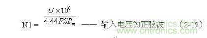 (2-18)式雖然是用于計算雙激式開關變壓器初級線圈N1繞組匝數的公式,但只需把式中的某個別參數稍微進行變換或修改,同樣可以用于計算其它波形電源變壓器初級線圈匝數的公式。