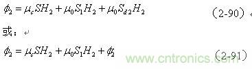 (2-91)式中,咋看起來,變壓器初級線圈N1產(chǎn)生的磁通量 全部穿過變壓器次級線圈N2,它們之間應(yīng)該不存在漏磁通;但是,初級線圈在面積S1中產(chǎn)生的磁通 的方向與在面積Sd2中產(chǎn)生的磁通