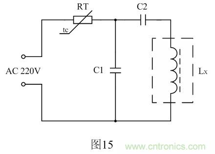 圖15中RT為熱敏電阻,Lx為小功率開關(guān)變壓器初級(jí)線圈,C1為分流電容,C2為限流電容。電容C1和C2的大小,需根據(jù)小功率開關(guān)變壓器初級(jí)線圈勵(lì)磁電流的大小來(lái)決定。一般消磁電流需要達(dá)到極限電流Imax的3~5倍。