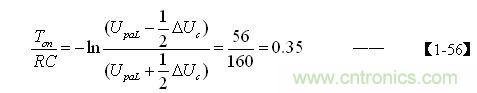 當(dāng)RC的值與開(kāi)關(guān)管導(dǎo)通時(shí)間Ton完全相等時(shí),【1-46】式的值正好等于0.37,與【1-56】式的結(jié)果非常接近?;蛘弋?dāng)紋波電壓