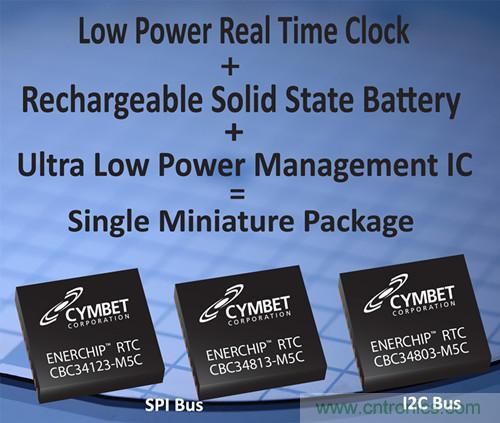 【導讀】Cymbet公司今日宣布:其EnerChip™ RTC系列產(chǎn)品正式發(fā)布商用,該產(chǎn)品將一顆超低功耗實時時鐘與可充電固態(tài)電池以及電源管理集成電路(PMIC)集成在一個5mm x 5mm的塑料封裝之內(nèi),是世界上最小的、帶有內(nèi)置電源保持的RTC。