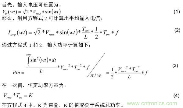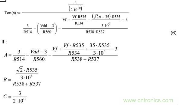 假設(shè)Vin_rms= x,Ton和Vin_rms之間的關(guān)系可計算如下: