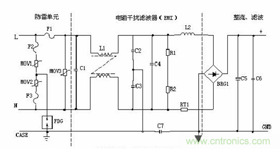 1.1、AC 輸入防雷電路工作原理: