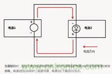 從上圖可以看出,當(dāng)負(fù)載短路時(shí),相當(dāng)于兩臺(tái)電源直接正、負(fù)極相連,電壓高的電源1會(huì)直接給電壓低的電源2供電。此時(shí),電源2的反向保護(hù)二極管導(dǎo)通,而電流則限制在電源1的設(shè)定電流值并處于恒流CC模式,保護(hù)電源2避免損壞!