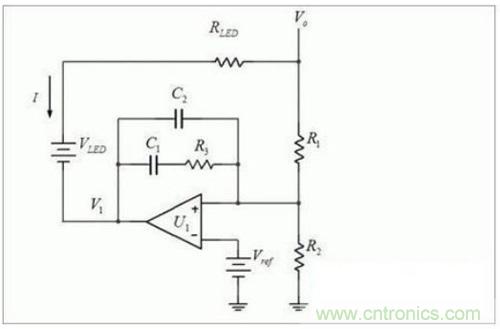 然而這依然是個(gè)復(fù)雜的反饋,比電壓型運(yùn)放的反饋,復(fù)雜。電壓型反饋,只有一個(gè)標(biāo)準(zhǔn)的反饋回路,開環(huán)傳遞函數(shù),一目了然。而這個(gè)電流的復(fù)雜多了。如果不是把Vo/Rled 視為擾動(dòng),我們幾乎很難用通常的補(bǔ)償方法補(bǔ)償。最后,需要指出的是,只有教科書中