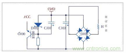 如圖3,當(dāng)感應(yīng)線圈靠近發(fā)射線圈時(shí),就會(huì)產(chǎn)生感應(yīng)電流,經(jīng)過(guò)全波整流后,根據(jù)不同的電子產(chǎn)品的充電電壓,可選擇不同的穩(wěn)壓二極管穩(wěn)壓,再經(jīng)三極管Q100放大電流后供給不同電子產(chǎn)品充電。