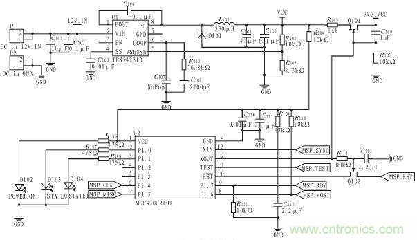 本文通過增加TI的MSP430低功耗MCU配合BQ500410A來實(shí)現(xiàn)系統(tǒng)的低功耗。為了實(shí)現(xiàn)低功耗,一種最直接的方法是無負(fù)載時(shí)直接關(guān)斷電源使BQ50041A 完全關(guān)機(jī)。但是這樣做的話,包括充電狀態(tài)、錯(cuò)誤狀態(tài)、操作模式及驅(qū)動(dòng)引腳狀態(tài)信息等將會(huì)完全丟失。增加MSP430 后,BQ500410A 可以周期性的關(guān)機(jī)來節(jié)節(jié)省功耗,其喚醒信號(hào)由MSP430 來提供。同時(shí),各種狀態(tài)信息也由MSP430 來保存,LED 狀態(tài)指示燈也由原先的BQ500410A 驅(qū)動(dòng)變?yōu)橛蒑SP430 來驅(qū)動(dòng)。如此一來,雖然系統(tǒng)的復(fù)雜度及成本提高了, 但是待機(jī)功耗由原先的300 mW 降低到90 mW 左右。