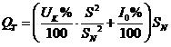 式中,QT 為變壓器無功損耗,kvar;UK %為變壓器短路電壓百分?jǐn)?shù),I0%為變壓器空載電流百分?jǐn)?shù);S為變壓器的視在功率,kVA;SN 為變壓器額定容量kVA。一般的,升壓變的短路電壓百分值為6.7%,空載電流百分值為0.4%。