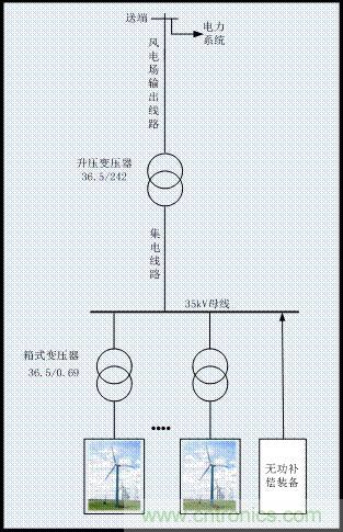 2)集電線路:風(fēng)機的電力經(jīng)過箱式變壓器升壓后通過集電線路將電力送至風(fēng)電場升壓站。