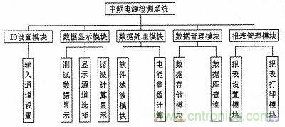根據測試系統(tǒng)的功能需求,可將系統(tǒng)軟件分成五大功能模塊,分別為IO設置模塊、數據顯示模塊、數據處理模塊、數據管理模塊及報表管理模塊,如圖2所示。在確定了測試系統(tǒng)的功能并劃分軟件系統(tǒng)各主要功能模塊后,就可規(guī)劃主要程序結構和程序。