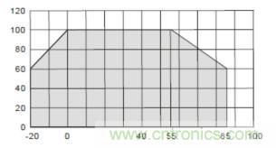 圖3:常規(guī)AC-DC產品的溫度降額曲線