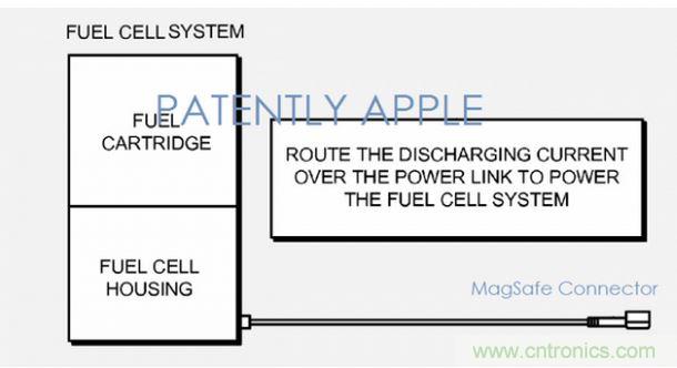 在這種專利一種可能的實施方案中,蘋果的燃料電池,可以作為一個獨立的供電模塊,通過MagSafe連接線纜和蘋果筆記本電腦連接。不過蘋果也表示,這種供電設(shè)備可以采用市面上的其他線纜,除了供電之外,線纜還可以作為電子設(shè)備和燃料電池之間的通信管道。