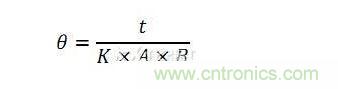 變量l是通孔的長度(從頂面銅層到底面銅層)。電路板上焊接電源模塊的地方?jīng)]有阻焊層,但對其他區(qū)域,PCB設(shè)計工程師可能要求在每個通孔的頂部放置阻焊層,否則通孔上面的區(qū)域會空缺。由于通孔只連接外銅層,所以其長度為63.4密耳(0.0634英寸)。總通孔長度本身的熱阻是167°C/W,如式3所示。