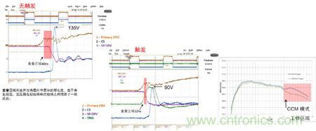 晶體管(仍有一些電流流過次級端電路)。關(guān)斷SR晶體管的信息被小信號變壓器轉(zhuǎn)移到產(chǎn)生偽ZCD狀況的初級端,所以QR控制器可在次級端電流消失前轉(zhuǎn)向初級晶體管,最終進(jìn)入CCM模式,這使變壓器可轉(zhuǎn)換比在DCM模式更多的能量,為QR帶來最大峰值功率優(yōu)勢,可大大提升重載時(shí)的能效。