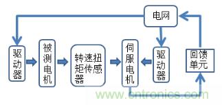 伺服電機可以進行電機對拖,公共直流母線采用單獨的整流/回饋裝置,為系統(tǒng)提供電能,調(diào)速用逆變器直接掛接在直流母線上,當(dāng)系統(tǒng)工作在電動狀態(tài)時,逆變器從母線上獲取電能;當(dāng)負載被被測電機反向拖動的時候,伺服電機將會變成發(fā)電機,能量通過母線及回饋裝置直接回饋給電網(wǎng),以達到節(jié)能、提高設(shè)備運行可靠性等目的。