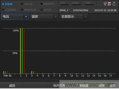 逆變器在將直流轉換成交流輸出之后,交流的電能質(zhì)量是檢測逆變器的一個很重要的指標。輸出端的交流如果存在電能質(zhì)量問題,不僅僅是影響逆變器使用效率,減少逆變器使用壽命,更有可能給使用者帶來生命財產(chǎn)的安全隱患。例如,由逆變器輸出的交流電往往含有諧波,下圖為E6500對交流的諧波檢測。