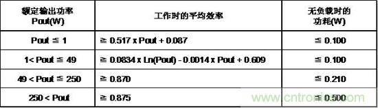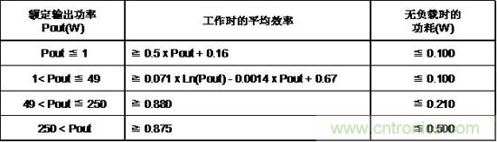 表2.DOE CEC 6級(jí)外部電源能效標(biāo)準(zhǔn)AC/DC電源(輸出電壓< 6V)