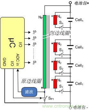 因?yàn)楸粍?dòng)均衡的局限,主動(dòng)均衡的概念得以提出并發(fā)展。主動(dòng)均衡是把高能量電池中的能量轉(zhuǎn)移到低能量電池中,相當(dāng)于對(duì)木板“截長(zhǎng)補(bǔ)短”。因?yàn)椴幌癖粍?dòng)均衡只有“截”,在如何“補(bǔ)”的問(wèn)題上業(yè)內(nèi)充分發(fā)揮了各自的優(yōu)勢(shì)和想象力,主動(dòng)均衡的方案可謂異彩紛呈。除了飛度電容的方案(因?yàn)檫m用串?dāng)?shù)低,轉(zhuǎn)移有局限性而未能成為主流),還有變壓器的方案,變壓器方案中又有各種拓?fù)浣Y(jié)構(gòu)。半導(dǎo)體廠家也設(shè)計(jì)了電池專用的DCDC轉(zhuǎn)換芯片,命名為主動(dòng)均衡控制芯片來(lái)推向市場(chǎng),顯然是不想錯(cuò)過(guò)這班車。