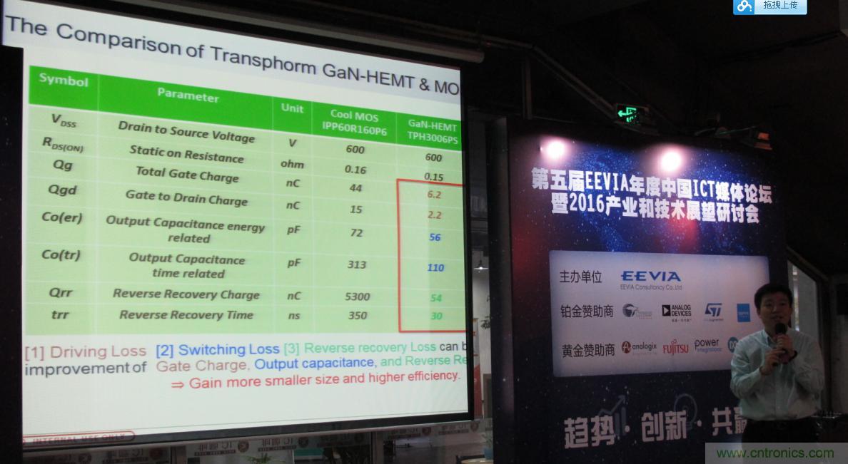 【導(dǎo)讀】氮化鎵技術(shù)擁有低功耗、小尺寸等特性設(shè)計(jì)上的獨(dú)特優(yōu)勢,其優(yōu)勢以及成熟規(guī)?;a(chǎn)能力使其近年來在功率器件市場大受歡迎。在前不久舉辦的EEVIA第五屆ICT技術(shù)趨勢論壇上,這個(gè)主題受到國內(nèi)媒體的集體“圍觀”。