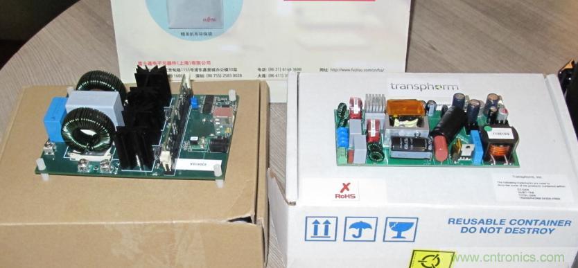 在演講現(xiàn)場,富士通電子展示了兩款基于HEMT器件的電源模塊方案。“我們的PFC+LLC電源與類似的競爭方案相比,電路板尺寸可以縮減45%,在滿載和10%的負(fù)載下,我們可以分別提高1.7%和3%的效率。對于很多效率要求苛刻的應(yīng)用來說,這是一個(gè)非常大的提升。”Eric指出。