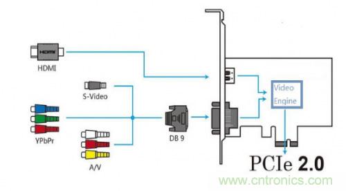 圖一是目前視頻采集卡非常主流的硬件架構(gòu),Vedio Engine包括視頻編解碼器和FPGA,協(xié)議以及算法都由FPGA來實(shí)現(xiàn),后面通過FPGA的Serdes接口送出到電腦,采用X4 PCIE2.0總線協(xié)議。世強(qiáng)市場經(jīng)理表示:PCIE總線發(fā)展到現(xiàn)在經(jīng)歷了3代,分別是GEN1 2.5GT/S, GEN2 5GT/S, GEN3 8GT/S,如果設(shè)置成X4,GEN2就可以滿足20GT/S的帶寬,基本可以滿足目前主流高清帶寬需求,所以主流的視頻采集卡都采用PCIE2.0。
