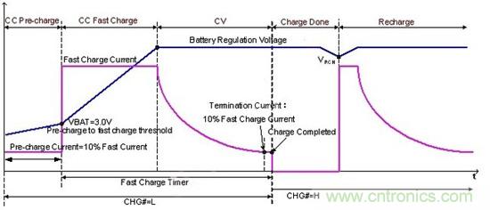 先來了解下鋰電池手機(jī)完整充電的三個(gè)階段:恒流預(yù)充電、大電流恒流充電和恒壓充電。手機(jī)電量耗光之后電壓降低,當(dāng)?shù)陀谝欢〝?shù)值時(shí)充電器會(huì)使用比較低的電流對鋰電池進(jìn)行預(yù)充電。經(jīng)過一段時(shí)間,鋰電池電壓高于預(yù)定數(shù)值后,就進(jìn)入第二個(gè)階段大電流恒流充電,此時(shí)適當(dāng)提高電流可以加快充電速度,具體過程可以參考下圖。