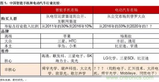 在野村證券的一份報告中,分析師黃樂平將中國電動汽車與智能手機產(chǎn)業(yè)進行了比較,ELEXCON君在他的分析基礎上進行了進一步研究,從中發(fā)現(xiàn),今天的電動車市場與中國智能手機品牌崛起前的情況有諸多驚人的相似,體現(xiàn)在以下多個方面: