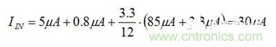 我計(jì)算出的30μA電流值有點(diǎn)不同,不過(guò)對(duì)于粗略估算來(lái)說(shuō),這個(gè)值已經(jīng)十分接近了。