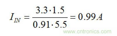 以SIMPLE SWITCHERLM22670 3A降壓穩(wěn)壓器的數(shù)據(jù)表為例,負(fù)載為1.5A,輸入電壓和輸出電壓分別為5.5V和3.3V情況下的效率大約為91%。這使你的輸入電流大約為: