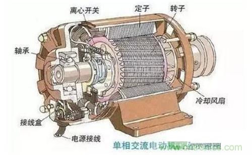 以下是單向交流電動(dòng)機(jī)的構(gòu)造:
