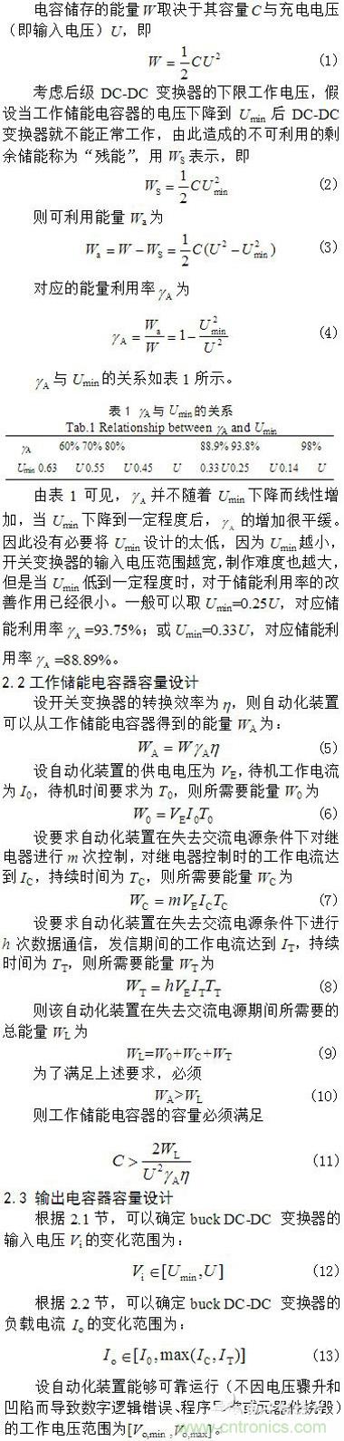 【導(dǎo)讀】為了在失電情況下繼續(xù)維持智能終端設(shè)備短暫工作,提出了一種基于電容儲能的自動化終端備用開關(guān)電源解決方案。論述了電路組成、下限工作電壓選取和儲能電容器容量設(shè)計(jì)方法。