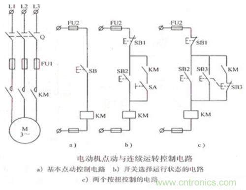 在圖a中,按下按鈕SB,電動(dòng)機(jī)啟動(dòng),松開后電動(dòng)機(jī)停止。是典型的點(diǎn)動(dòng)控制。