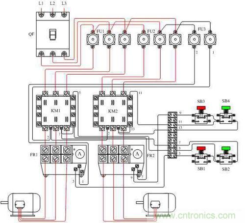 異地控制電動(dòng)機(jī)時(shí),只需要注意,停止按鈕全部串聯(lián),啟動(dòng)按鈕全部并聯(lián)即可。