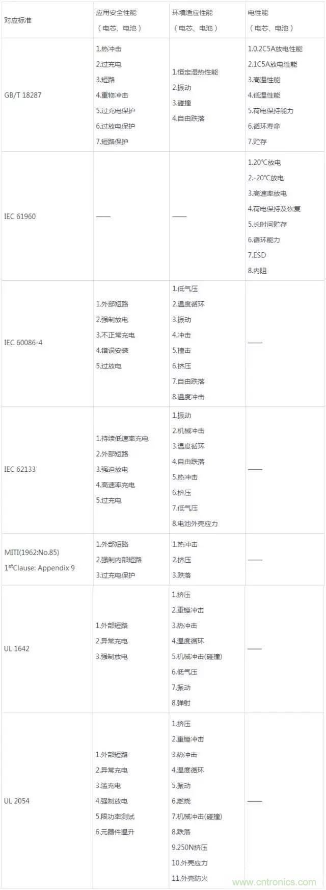 鋰電池測(cè)試常見標(biāo)準(zhǔn)匯總:考察安全性和電性能