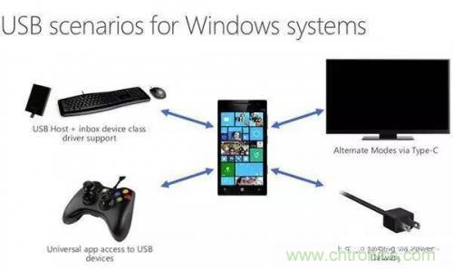 微軟Windows 10引入對(duì)Type-C的支持,不僅桌面版Windows 10原生支持USB Type-C接口,手機(jī)版Windows 10也支持,可以輕松實(shí)現(xiàn)搭載Windows 10操作系統(tǒng)的手機(jī)與USB主設(shè)備或者是USB配件兩者之間進(jìn)行數(shù)據(jù)交換以及視頻共享。例如:手機(jī)與USB外圍設(shè)備交互數(shù)據(jù),支持XboxOne遙控器、鼠標(biāo)、鍵盤(pán)、插座以及使用USB Type-C接口外接顯示器或電視等,Type –C或?qū)㈤_(kāi)創(chuàng)連接新模式。