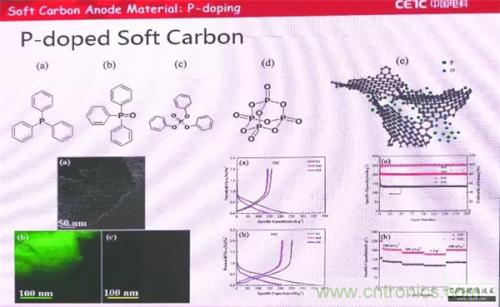 鈉離子電池和鋰離子電池的反應(yīng)機(jī)理相近,正極材料除了磷酸鹽或氟化磷酸鹽以外,還可以用鎳錳層狀過渡金屬氧化物。在負(fù)極材料方面可選擇碳類、合金和化合物。在三大類負(fù)極材料中,我們還是選擇最便宜的碳材料。我們對(duì)于負(fù)極碳材料又進(jìn)行了軟碳、硬碳和石墨烯三個(gè)分類的研究。