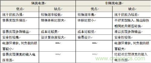 表1.隔離電源與非隔離電源優(yōu)缺點