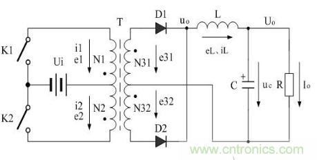 由于它的兩個(gè)控制開(kāi)關(guān)K1和K2輪流交替工作,其輸出電壓波形非常對(duì)稱,并且開(kāi)關(guān)電源在整個(gè)工作周期之內(nèi)都向負(fù)載提供功率輸出,其輸出電流瞬間響應(yīng)速度很高,并且它是所有開(kāi)關(guān)電源中電壓利用率最高的開(kāi)關(guān)電源,它在輸入電壓很低的情況下,仍能維持很大的功率輸出,所以被廣泛應(yīng)用于低輸入電壓的DC/AC逆變器,或DC/DC轉(zhuǎn)換器電路中。