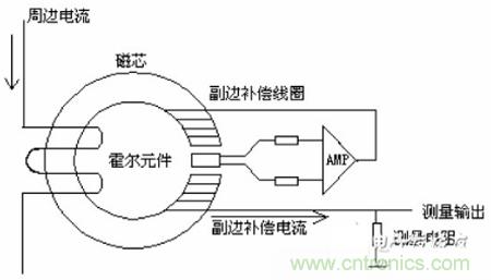 霍爾電流傳感器的原理圖如3-2。被測(cè)電流In流過導(dǎo)體產(chǎn)生的磁場(chǎng),由通過霍爾元件輸出信號(hào)控制的補(bǔ)償電流Im流過次級(jí)線圈產(chǎn)生的磁場(chǎng)補(bǔ)償,當(dāng)原邊與副邊的磁場(chǎng)達(dá)到平衡時(shí)其補(bǔ)償電流Im即可精確反映原邊電流In值。