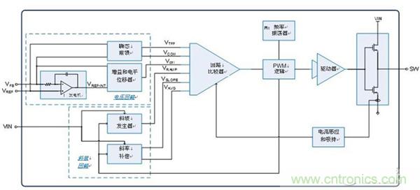 2.斜坡回路根據(jù)VIN和PWM信號生成斜坡電壓。經(jīng)優(yōu)化的斜坡補(bǔ)償值僅為下降斜率斜坡電壓的一半。