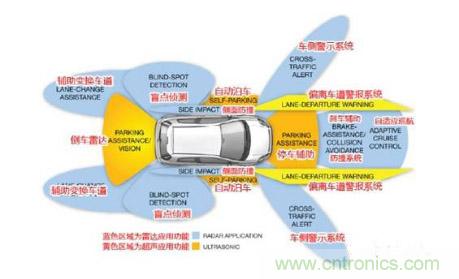 ADAS(高級(jí)輔助駕駛系統(tǒng)),是指利用安裝于車上各式各樣的傳感器,在第一時(shí)間收集車內(nèi)的環(huán)境數(shù)據(jù),進(jìn)行靜、動(dòng)態(tài)物體的辨識(shí)、偵測(cè)與追蹤等技術(shù)上的處理,從而能夠讓駕駛者在最快的時(shí)間察覺可能發(fā)生的危險(xiǎn)。通常包括導(dǎo)航與實(shí)時(shí)交通系統(tǒng)TMC,電子警察系統(tǒng)ISA 、自適應(yīng)巡航ACC 、車道偏移報(bào)警系統(tǒng)LDWS、車道保持系統(tǒng),碰撞避免或預(yù)碰撞系統(tǒng)、夜視系統(tǒng)、自適應(yīng)燈光控制、行人保護(hù)系統(tǒng)、自動(dòng)泊車系統(tǒng)、交通標(biāo)志識(shí)別、盲點(diǎn)探測(cè),駕駛員疲勞探測(cè)、下坡控制系統(tǒng)和電動(dòng)汽車報(bào)警系統(tǒng)等。