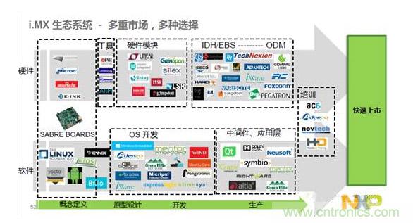 除了S32V系列,被收購(gòu)的飛思卡爾有一款著名的i.MX系列芯片也可以作為中央處理器。i.MX特別是i.MX6在汽車上,特別是車載信息系統(tǒng)上有大量的應(yīng)用。眾多的汽車廠商使用i.MX。