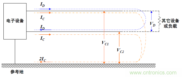 3. 器件上的電路走線與大地之間有電位差,這樣電路走線上會產(chǎn)生共模干擾電流。