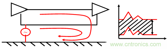 2. 由于電路走線兩端的器件所接的地電位不同,在這個地電位差的驅(qū)動下產(chǎn)生的電流。