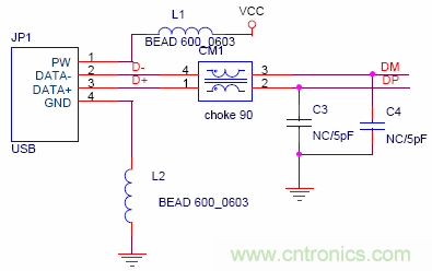 USB 高速運(yùn)行會在DM/DP信號線上產(chǎn)生很強(qiáng)的共模干擾
