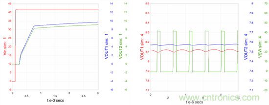 圖6:在WEBENCH電源設計工具中針對一個Fly-Buck設計生成的啟動和穩(wěn)定狀態(tài)波形